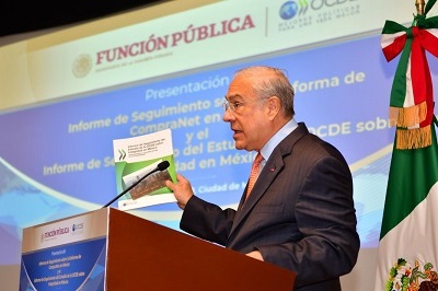 Al presentar los informes de seguimiento sobre la reforma del Sistema de Compras de gobierno, conocido como ‘CompraNet’, y sobre la Integridad en México, Angel Gurría dijo que para que haya una continuidad e implementación efectiva de políticas públicas, «la propia evaluación que lleva a cabo la secretaria de la Función Pública respecto a los objetivos generales del plan de gobierno y no solo del combate a la corrupción, suele verse mermada por la falta de un servicio civil profesional de carrera».
