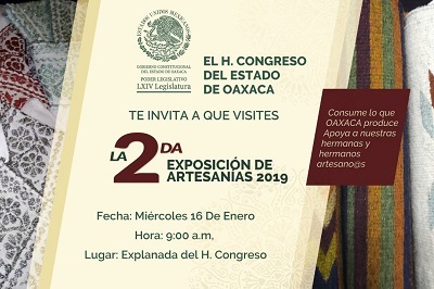 La exposición artesanal tendrá lugar el próximo miércoles 16 de enero del presente año y comenzará a las 9:00 de la mañana en la Explanada central del Honorable Congreso del Estado.
