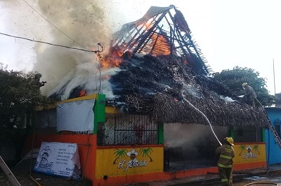 En tanto personal de bomberos de la ciudad de Tuxtepec, controlo el incendio en el restaurante que resulto con pérdida total y en el que se presentaron 2 lesionados que fueron atendidos en el lugar de los hechos por personal de la Cruz Roja Mexicana.