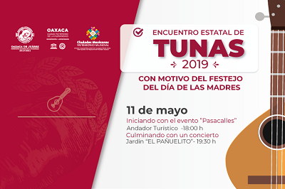 Oaxaca de Juárez, Oaxaca, a 9 de mayo de 2019.- Como parte de las actividades que el Gobierno Municipal de Oaxaca de Juárez ha preparado para celebrar el Día de las Madres, el próximo sábado 11 de mayo se realizará el Encuentro Estatal de Tunas 2019.