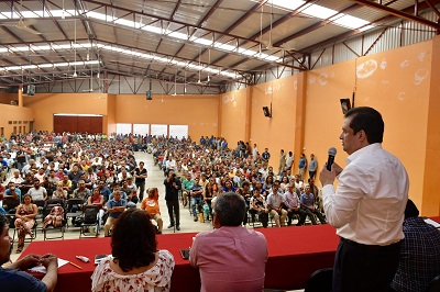 “Yo quiero decirles, amigos, compañeras y compañeros que en la historia del sindicato ningún Presidente Municipal o alguna administración había traído 40 camiones, hay que decirlo compañeros”, subrayó Jesús Pérez Cortés, trabajador del Centro de Transferencia “El Arenal”.