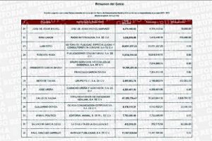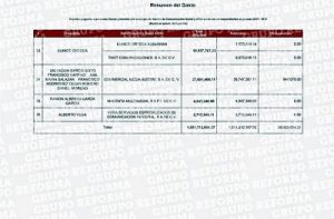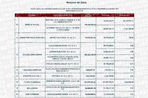 En el listado revelado están además, Eunice Ortega con 10 millones 607 mil pesos; Maru Rojas, con 9 millones 554 mil 903 pesos; Guillermo Ochoa con 8 millones 178 mil; Francisco Cárdenas con 7 millones 853 mil 293; el portal Animal Político con 7 millones 753 mil; Ricardo Rocha con más de 4 millones 600 mil; Eduardo Ruiz Healy con 4 millones 242 mil; y Nino Canún con 1 millón 636 mil pesos.