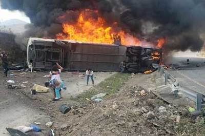 -Peregrinos volvían a Chiapas. -Chocan autobús y tractocamión en Veracruz; 21 muertos y 30 heridos.