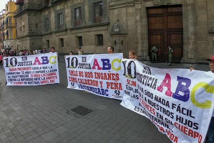 Este miércoles, mientras el Gobierno federal daba a conocer la reapertura de la investigación del caso ABC, en el exterior de Palacio Nacional una decena de padres clamaban por una audiencia con el presidente para exigir, una vez más, justicia para sus hijos. «AMLO no nos engañes como Calderón y Peña #AtiendeABC», indicaba una de las pancartas. Al ser cuestionado en la rueda de prensa sobre la ausencia de una reunión con los padres agraviados, López Obrador ha explicado que se reunirá con los padres cuando exista un consenso entre ellos. Una década ha transcurrido desde que más de un centenar de familias fue marcada por el dolor, su demanda de justicia sigue sin tener respuesta.