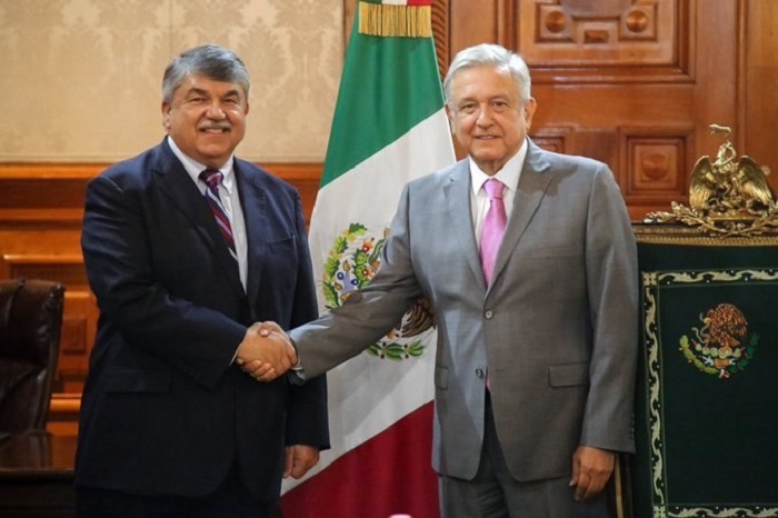 Néstor Jiménez y Alma E. Muñoz | miércoles, 04 sep 2019 18:51|Ciudad de México. El presidente Andrés Manuel López Obrador se reunió este miércoles en privado con Richard Trumka, líder del sindicato AFL-CIO (Federación Estadunidense del Trabajo y Congreso de Organizaciones Industriales, por sus siglas en inglés), uno de los más importantes del país vecino, con quien habló del Tratado de Libre Comercio con Estados Unidos y Canadá.