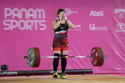 La mexicana de 26 años consiguió la medalla de plata en la categoría de 76 kilogramos en los pasados Juegos Panamericanos Lima 2019, tras cargar 250 kilogramos, 110 de arranque y 140 de envión.