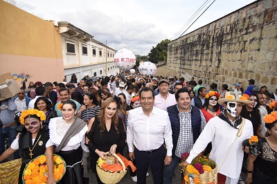 Oaxaca de Juárez, Oaxaca, a 26 de octubre del 2019.- Para anunciar el inicio formal de las actividades del programa “En Oaxaca, ¡La muerte se vive! Festividades Día de Muertos 2019”, el Presidente Municipal de Oaxaca de Juárez, Oswaldo García Jarquín, y la presidenta del Consejo Consultivo del DIF Municipal, Patricia Benfield López, encabezaron la Gran Comparsa Tradicional “En Oaxaca, ¡La muerte se vive!”, que recorrió las principales calles del centro de la capital de Oaxaca.