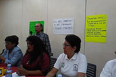 La trabajadora que durante un año fue coordinadora de farmacia del hospital general destapó la red de corrupción en donde varios de sus compañeros están involucrados en el saqueo de medicamento caro y vital para enfermos de cáncer, recién nacidos, terapia intensiva y en general para los internados en el nosocomio, sin embargo no fue apoyada por la dirigencia de la sección 28 del SNTSS, por lo que buscó el apoyo de la Sección Oaxaca del Sindicato Nacional Libre de Trabajadores del Seguro Social. “El robo está comprobado por los videos de seguridad, sin embargo lejos de castigar a los responsables los protegen, por eso hoy hace la denuncia pública, además de que ya está en las instancias correspondientes”, señaló.