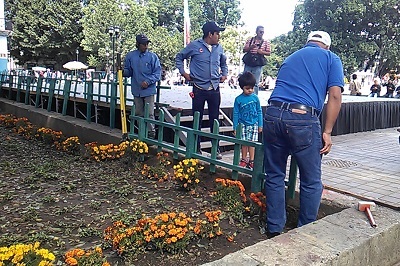 Miguel Angel Luna |Oaxaca, Oaxaca, 1o. De noviembre de 2019. Ambientalistas y empresarios tomaron la iniciativa de cercar la jardinera en donde se ubica el Laurel de la India que es parte del foro conocido como «Bajo el Laurel» ubicado en el Zócalo de la ciudad, esto para evitar que ciudadanos o manifestarse lo invadan y dañen las especies recién plantadas.