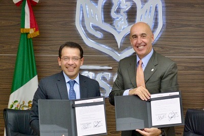 México, Ciudad de México, a 12 de noviembre de 2019. Como parte de la reestructuración que se aplica en SUPERISSSTE para darle un sentido más proactivo y ofrecer productos de la canasta básica a precios accesibles, el Director General del Instituto de Seguridad y Servicios Sociales de los Trabajadores del Estado (ISSSTE), Luis Antonio Ramírez Pineda, y el titular del Grupo Financiero Banorte, José Marcos Ramírez Miguel, firmaron un convenio que permitirá aceptar las tarjetas de este banco en las 70 tiendas de todo el país, así como disponer de efectivo, descuentos y promociones al realizar sus compras.