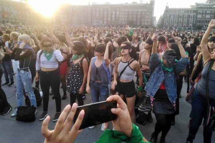 Lo anterior, como parte de la réplica del performance «Un violador en tu camino», del colectivo feminista chileno Las Tesis.