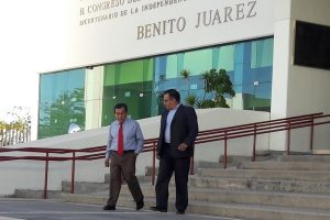 periodistas Ernesto Reyes y Francisco J. Sánchez, a quien sustituye, realizaron un recorrido por los espacios destinados a los medios de comunicación, sala de prensa, sala de entrevistas, corral de la ignominia, recinto legislativo, así como dónde realizan su actividad los trabajadores de dicha dirección.