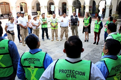 Posteriormente, el verificador técnico del Departamento de Normatividad y Gestión del Riesgo, Marco Concha Marichalar, enfatizó que a través de este ejercicio fue posible constatar el buen estado del edificio del Palacio Municipal, así como identificar los posibles riesgos que pueden suscitar los elementos no estructurales, es decir, señaló, los objetos que en determinado caso pudieran obstaculizar el proceso de desalojo del inmueble en caso de presentarse algún fenómeno perturbador.