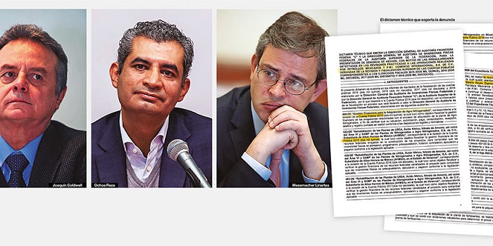 Pedro Joaquín Coldwell, exsecretario de Energía; Enrique Ochoa Reza, exdirector general de la Comisión Federal de Electricidad, y Miguel Messmacher Linartas, exsubsecretario de Ingresos de Hacienda –y brazo derecho de Luis Videgaray Caso, exsecretario de Hacienda–, están imputados desde julio pasado en una denuncia de la Auditoría Superior de la Federación ante la Fiscalía General de la República por la compra fraudulenta de la planta chatarra Agronitrogenados.