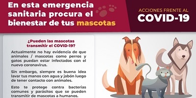 La Organización Panamericana de la Salud (OPS) señala que se carece de evidencia de que los perros se puedan enfermar o transmitir el COVID-19 a las personas; la infección en gatos se está investigando.