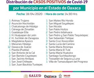 Oaxaca de Juárez, Oax. 18 de abril de 2020. Los Servicios de Salud de Oaxaca (SSO) informaron que hasta este sábado 18 de abril, se tienen registrados 62 casos positivos por COVID-19 en la entidad, así como 367 negativos y 61 sospechosos, lo que da un total de 490 notificaciones.