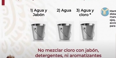 “El siguiente paso y elemento que es sumamente importante, es limpiar ese exceso de jabón, y eso se hace con un balde, una cubeta, que tenga un paño específico, sólo con agua limpia, ya con eso el siguiente elemento es lograr esa desinfección de esa superficie, esa desinfección es más segura haciéndola con una dilución con cloro”, explicó.