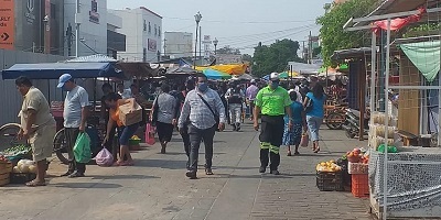El centro de Juchitán cada día va luciendo menos concurrido; de no ser por la sucursal de Banamex y uno que otro comerciante ambulante que coloca su puesto de frutas, este espacio estaría prácticamente sin gente, pues los puestos de flores han sido cerrados.