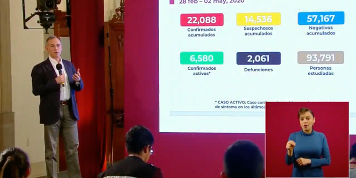 Laura Poy Solano|LaJornada | sábado, 02 may 2020 19:27|Ciudad de México. Los casos acumulados de Covid-19 en México suman ya los 22 mil 88, de los cuales, 6 mil 580 se reportan como activos, con síntomas en los últimos 14 días. La cifra de decesos acumulados reportada por la Secretaría de Salud (Ssa) rebasó hoy las 2 mil casos, con 2 mil 61 defunciones.