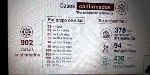 – Gobierno de Oaxaca reporta 902 confirmados y 378 activos.