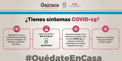 Oaxaca de Juárez, Oax. 25 de mayo de 2020. Toda vez que la entidad está por entrar al pico más alto de contagios por COVID-19, el Gobierno de Oaxaca recuerda a la sociedad oaxaqueña la existencia de líneas telefónicas especializadas que brindan orientación médica para saber cómo actuar en caso de presentar los síntomas de esta enfermedad.