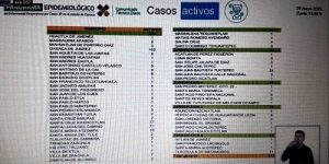 Dentro de los 65 casos nuevos, 15 de presentaron en Oaxaca de Juárez, 9 en Santa Cruz Xoxocotlán, 4 en Tlacolula de Matamoros, 3 en San Antonio de la Cal, San Antonino Castillo Velasco, San Juan Bautista Tuxtepec y Asunción Nochixtlán.
