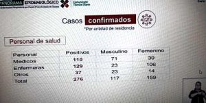 No pasa lo mismo en el personal médico infectado, ya que de los 276 actuales, 159 son mujeres (106 enfermeras, 39 médicas) y 117 hombres (71 médicos, 23 enfermeros)