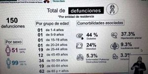 Tres de las defunciones se presentaron de Oaxaca de Juárez, 2 en San Juan Bautista Tuxtepec, 1 en Miahuatlán de Porfirio Díaz y otra en Santa María el Tule. Seis de ellas con comorbilidades.