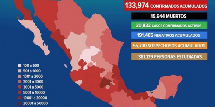 Dicha dependencia informó que ya son 15 mil 944 las personas fallecidas por el nuevo coronavirus SARS-COV-2 en el país.