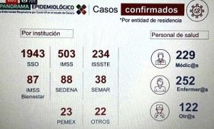Otro dato muy importante dado a conocer es el incremento de contagios en el personal de salud que ya suma 603.