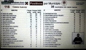 contagios, total 116 en 38 municipios.