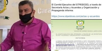 ARMANDO NOTÍCIAS- Agencia. Como una verdadera mascota que obedece cuando le silban o que trae el periódico si le truenan los dedos, el hospital secretario general de los burócratas adheridos al STPEIDCEO Juan Ignacio Cruz Villavicencio una vez que consiguió varios millones de pesos tras su declaración de que la base trabajadora no regresaría a laborar, vendió a sus representados exponiéndolos al contagio de COVID-19 estando la entidad oaxaqueña en semáforo rojo.