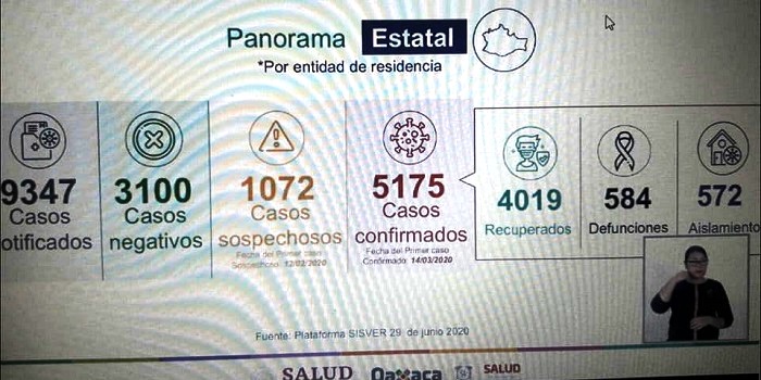 Juan López Sánchez/Barra Informativa/Oaxaca, 29 de junio 2020.- Este día los servicios de salud de Oaxaca informaron de 94 nuevos casos de contagio y 15 muertes causados por el covid-19, sobresaliendo que ya son mil 030 los trabajadores