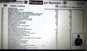 Los 94 casos se presentaron en 33 municipios, uno de ellos San Sebastián Ixcapa que presentó dos contagios.