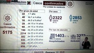 Con esos números la entidad cuenta con 5 mil 175 casos confirmados, mil 072 sospechosos, 584 defunciones y 572 activos.