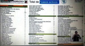 A diferencia de otros días, los municipios que venía reportando el mayor número de infecciones, este día mostraron una baja: Oaxaca de Juárez 17, San Juan Bautista Tuxtepec 1, Santa Cruz Xoxocotlán 5, Santa Lucía