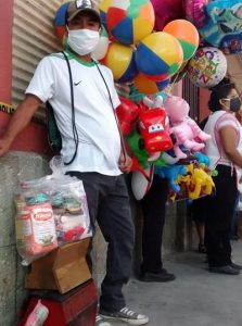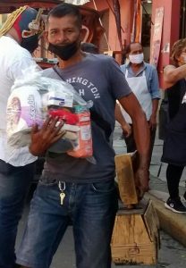 Globeros, boleros, vendedoras de peines, espejitos, y hasta don Abel García conocido en el mercado 20 de noviembre como El Chacal cargando su inseparable acordeón hicieron fila para recibir la ayuda.