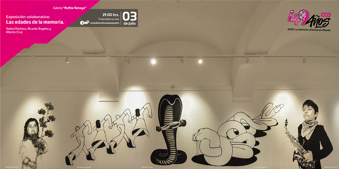 – Por primera vez intervienen los muros de la galería “Rufino Tamayo” de la CCO, con técnicas de grabado, grafitti y esténcil. – “Las edades de la memoria” recrea las vivencias personales de los artistas Alberto Cruz, Yankel Pacheco y Ricardo Ángeles.