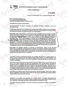 La autora de este reporte tuvo acceso al oficio PF/UAI/1806/2017 fechado el 14 de septiembre de 2017 entregado por la comisaria María Luisa Saucedo López, entonces titular de la Unidad de Asuntos Internos de la PF, a Manelich Castilla Cravioto, comisionado General de la Policía Federal.