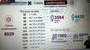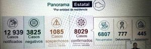 Hoy se informó de 65 contagios y 12 muertos, de un total acumulado de 8 mil 029 y 777, respectivamente.