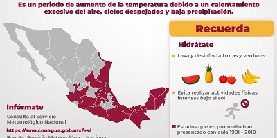 El subdirector de Protección Civil puntualiza que se debe poner especial atención en los grupos vulnerables: niñas y niños menores de 12 años de edad, personas adultas mayores, con discapacidad, mujeres embarazadas y ciudadanas y ciudadanos con enfermedades cardiacas, sobrepeso, que se encuentren bajo tratamiento médico o con algún grado de deshidratación.
