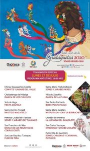 Esta presentación virtual que será transmitida por la señal de la Corporación Oaxaqueña de Radio y Televisión (Cortv), así como en las redes sociales de las secretarías de Economía (SE), Turismo (Sectur) y de las Culturas y Artes de Oaxaca (Seculta), estará aperturada por las tradicionales Chinas Oaxaqueñas con sus canastas de flores multicolores, bailando al son del Jarabe del Valle.