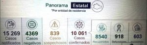 – Ya suma 918 defunciones y rebasó los 10 mil contagios. – Con los 133 casos nuevos de hoy suma 10 mil 061. – Los trabajadores de la salud alcanzaron los