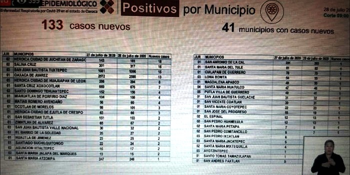 Es importante señalar que en los municipios donde aparecen los números mayoritarios de contagios, el día de hoy muestran una baja significativa, incluso en el que ocupa el tercer lugar de los Valles Centrales no reportó ninguna infección, lo que no quiere decir que vayan a la baja los contagios.