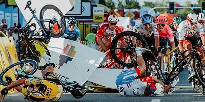Esta caída le provocó graves y numerosas lesiones a Jakobsen, a quien hubo que poner en coma inducido.