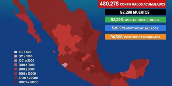 09/08/2020 19:11 REDACCIÓN|Excélsior|CIUDAD DE MÉXICO. La Secretaría de Salud federal (Ssa) informó en conferencia de prensa que el número de casos confirmados de la nueva cepa de coronavirus covid-19 aumentó a 480,278 en México.