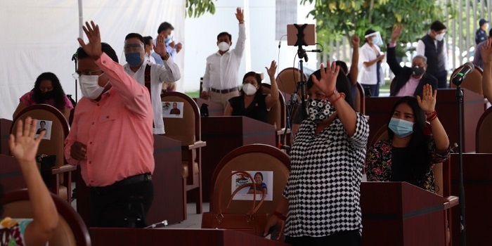 San Raymundo Jalpan, Oax. 11 de agosto de 2020. Integrantes de la LXIV Legislatura local, reformaron la Ley de Movilidad para el Estado de Oaxaca, a fin terminar con vicios al momento expedir y otorgar nuevas concesiones del servicio de transporte público.