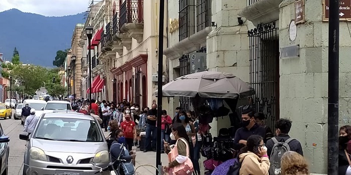 efectos del covid-19 en la entidad y daba a conocer a los municipios con mayores contagios y medidas urgentes para frenarlos, los oaxaqueños echaron en saco roto sus palabras y decidieron salir masivamente a marchar, bloquear, a demandar justicia, manifestarse en contra del ciclo escolar virtual, ir la banco, a comprar hilo o estambre, comida, ropa, chucherías, a deambular simplemente, sin considerar las restricciones que representa el color naranja del semáforo epidemiológico.