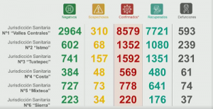 En relación a las Jurisdicciones Sanitarias, agregó que, Tuxtepec contabilizó un acumulado de mil 592, Istmo mil 352, Mixteca 778, Costa 569 y la Sierra (Norte) 220.