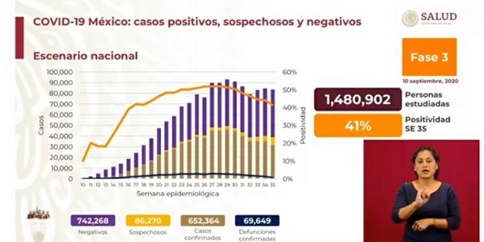 En el marco del Día Mundial para la Prevención del Suicidio, el funcionario federal detalló que los casos sospechosos suman 86 mil 270, mientras que las personas recuperadas llegan a los 458 mil 850. Destacó que la tasa de positividad de quienes han sido evaluados para detectar si están contagiados se mantiene en 40 por ciento.